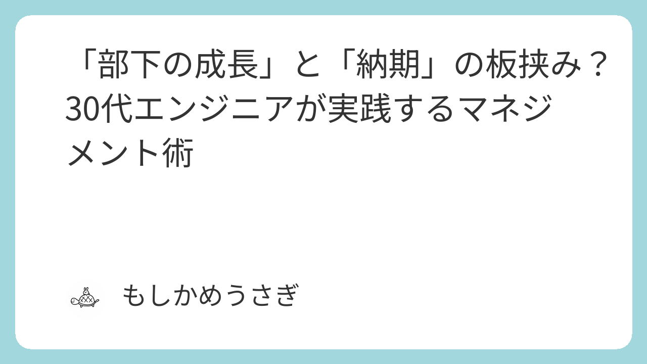 こんにちは。30代ハードウェアエンジニアもしかめうさぎです。最近、部下育成の難しさを痛感しています。部下の成長と目標達成を両立させる秘訣をお教えします。