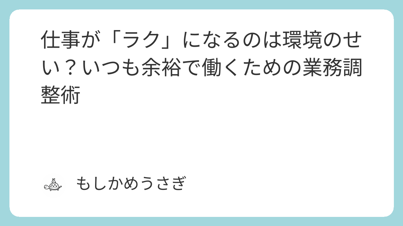 気がラクに仕事ができた日を「ラッキー」で終わらせず、常に余裕のある状態で働くためには、業務が切迫する前に動く必要があります。これはまるで、「未来の自分への時間の投資」です。