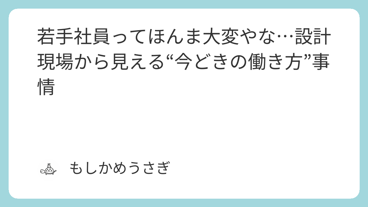 どうも、もしかめうさぎです。最近、職場の後輩を見ててふと思ったんです。